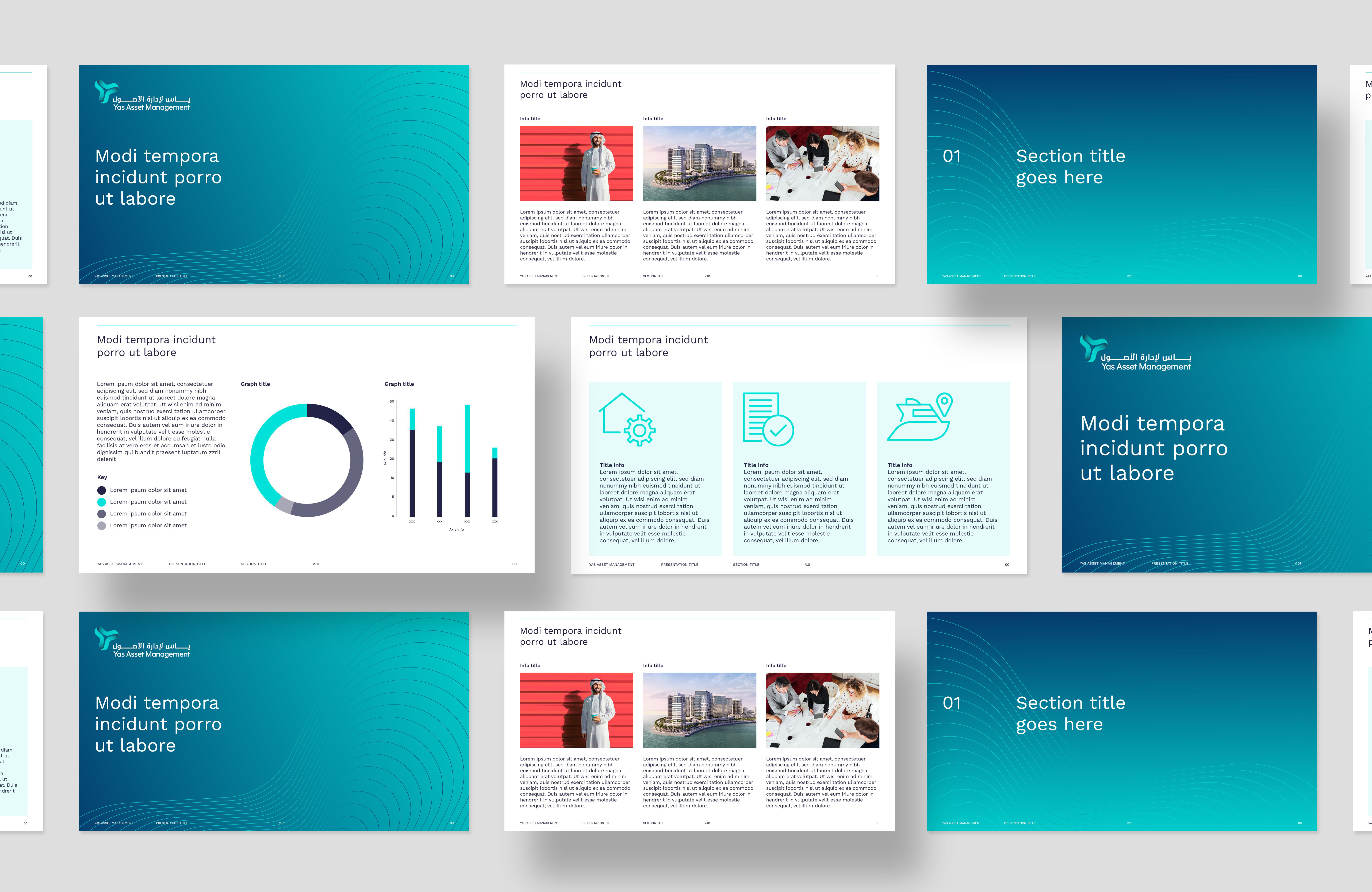 The result is a simple, elegant identity that echos elements of the Yas Island brand and links back to the shape of the Island. The visual language works in support of the identity to build a consistent design system that elevates the business to sit firmly within the space of their peers.